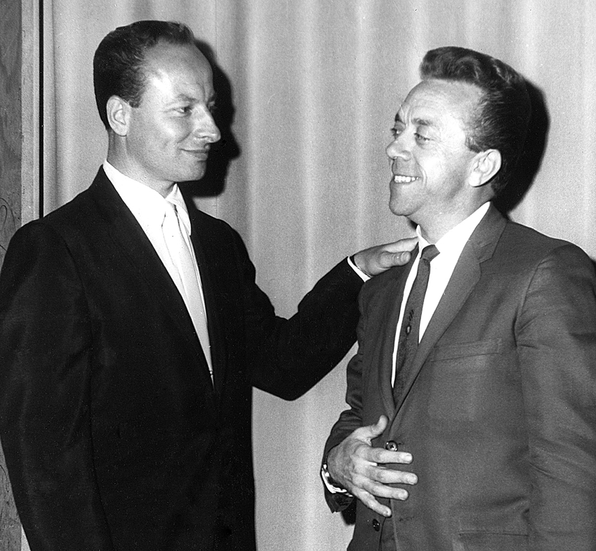 15_10_25 2 Carmen Dee 168(This photo from our album also appeared in the June 19, 1964 issue of the South Phila. American newspaper with the caption  “Carmen Dee, famed conductor and arranger, left, welcomes South Phila. American columnist Arthur Tavani, at the world famous Palumbo’s Theatre Restaurant, 824 Catharine St.”  Tavani was the original owner of our magical photo album.)