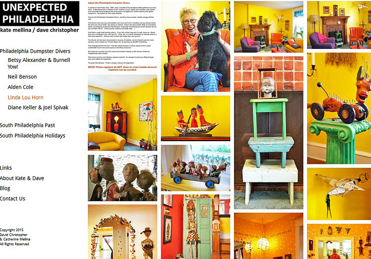 When we moved to South Philadelphia in 2012, we were looking for adventure. Kate was a found-object artist and feature writer by avocation. Dave photographed rock bands for an Asbury Park, NJ newspaper in his spare time. We’d owned a gallery, and loved hanging out at flea markets and quirky outsider art sites.
